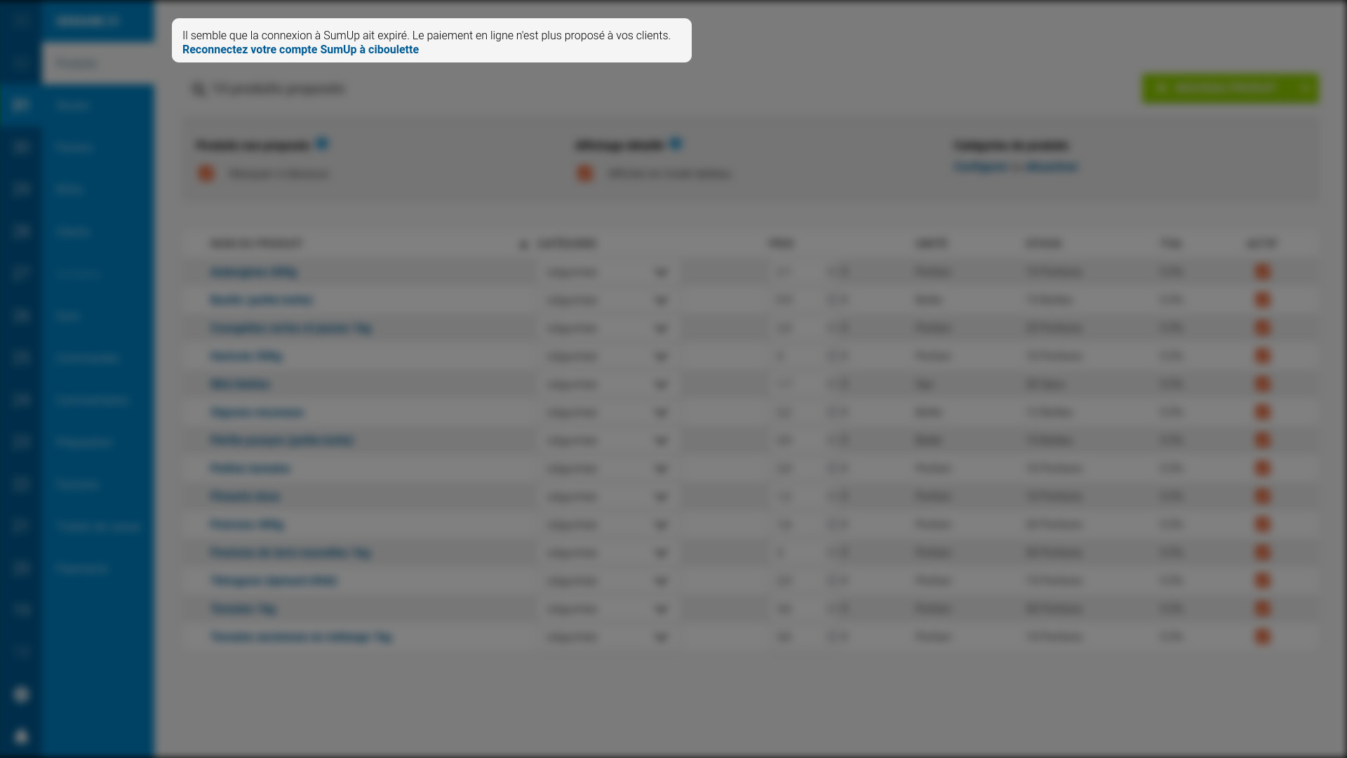 Un message d'avertissement apparaitra maintenant en évidence en haut de chaque page si votre compte sumup est déconnecté automatiquement de ciboulette.