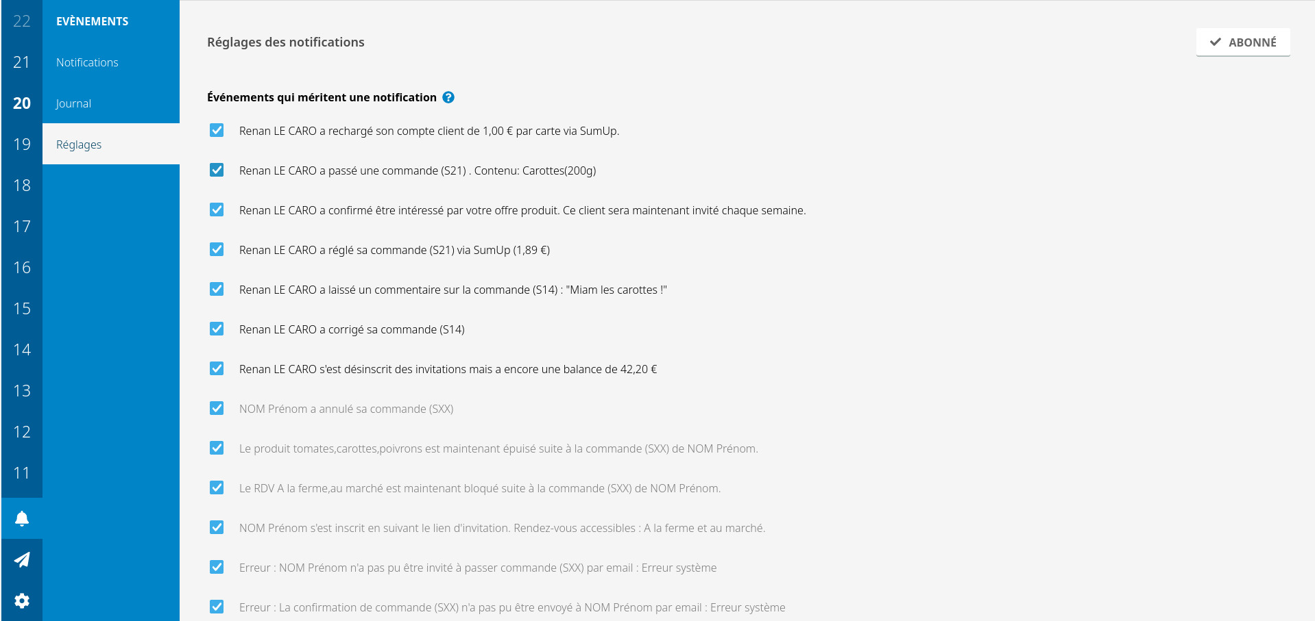 cette page pour les re-activer et être notifié quand il se passe un truc. S'il y a trop ou pas assez de notifications, vous pouvez décider quels évènements les déclenchent