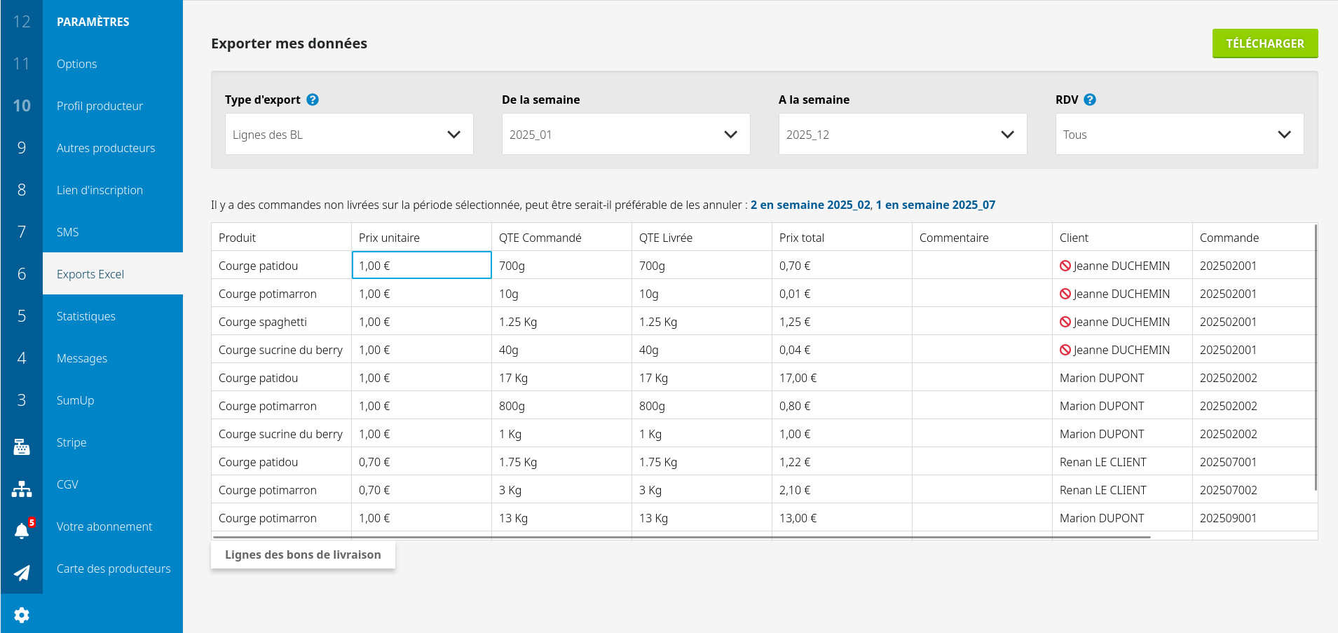 De plus, c'est le début du multi producteur dans ciboulette. Vous pouvez créer des producteurs, leur assigner des produits, et exporter qui a vendu quoi.