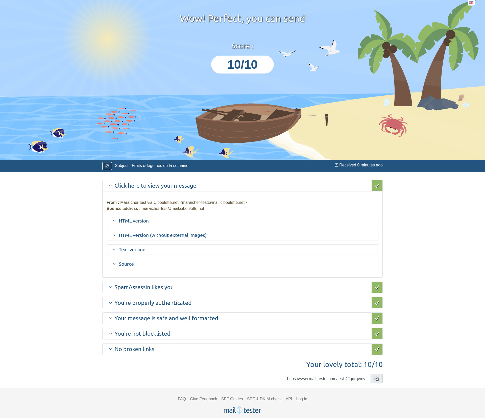 Le fonctionnement de la réputation des e-mails est très opaque, imprévisible et complexe, et on finit toujours parfois par arriver en spam, voire pire, en "bounce". Dans ce cas, l'e-mail est tout simplement ignoré, sans que ce soit signalé à l'expéditeur.