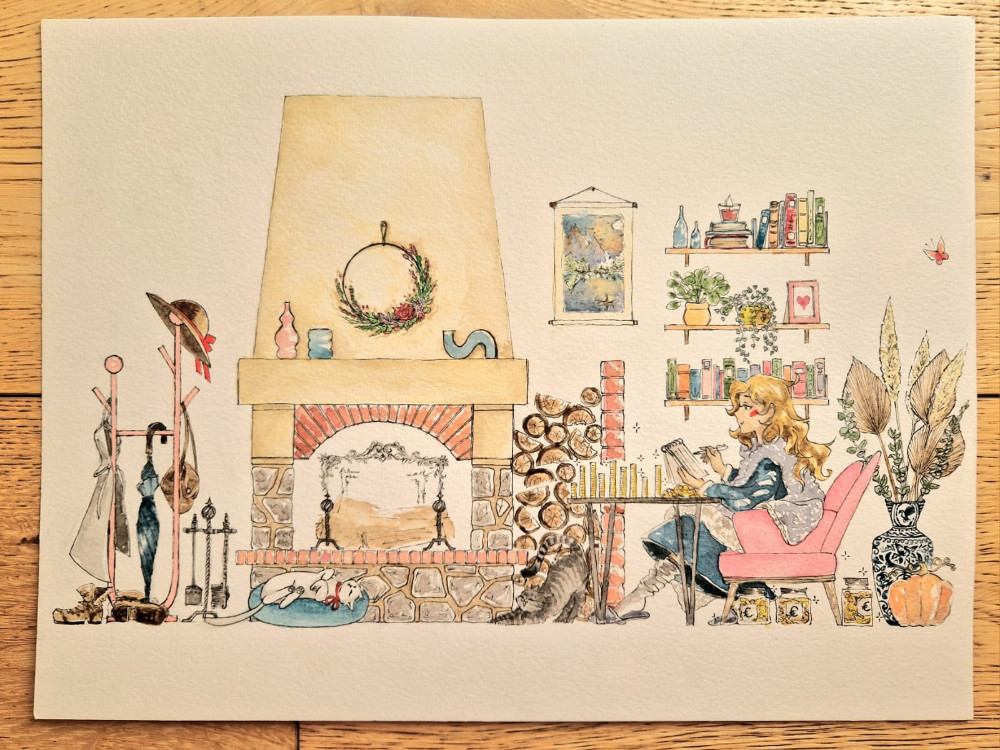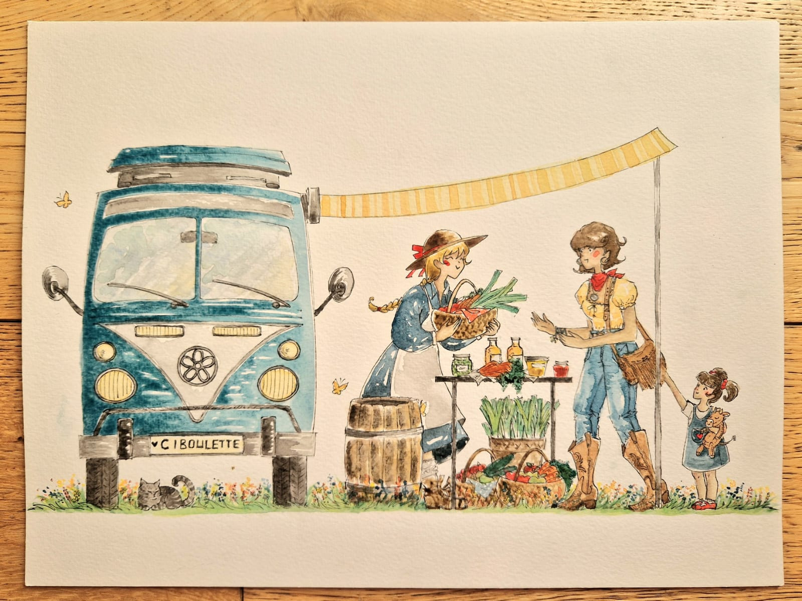 Sinon j'ai reçu de nouvelles planches d'illustrations pour décorer l'application, je vous mets les photos ci-dessous. C'est une amie artiste (Anne-Fleur TOTAIN) qui les fait sur commande et les colore à l'aquarelle. Elle a aussi réalisé les illustrations de la page produits, paniers, etc.