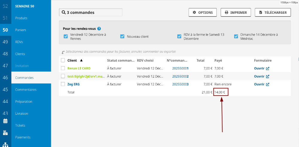 Dans la page "commandes", le total payé et dû sont maintenant affichés en bas du tableau, merci pour la suggestion Damien Jalabert.