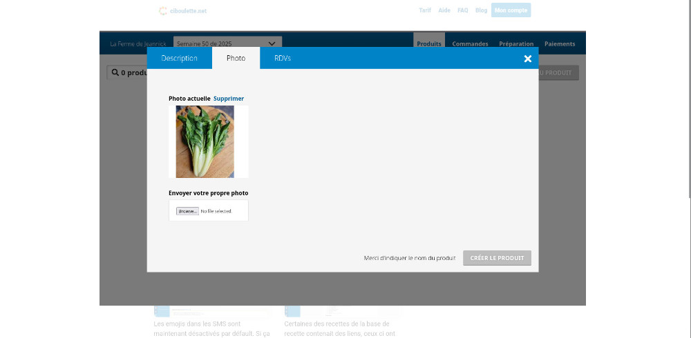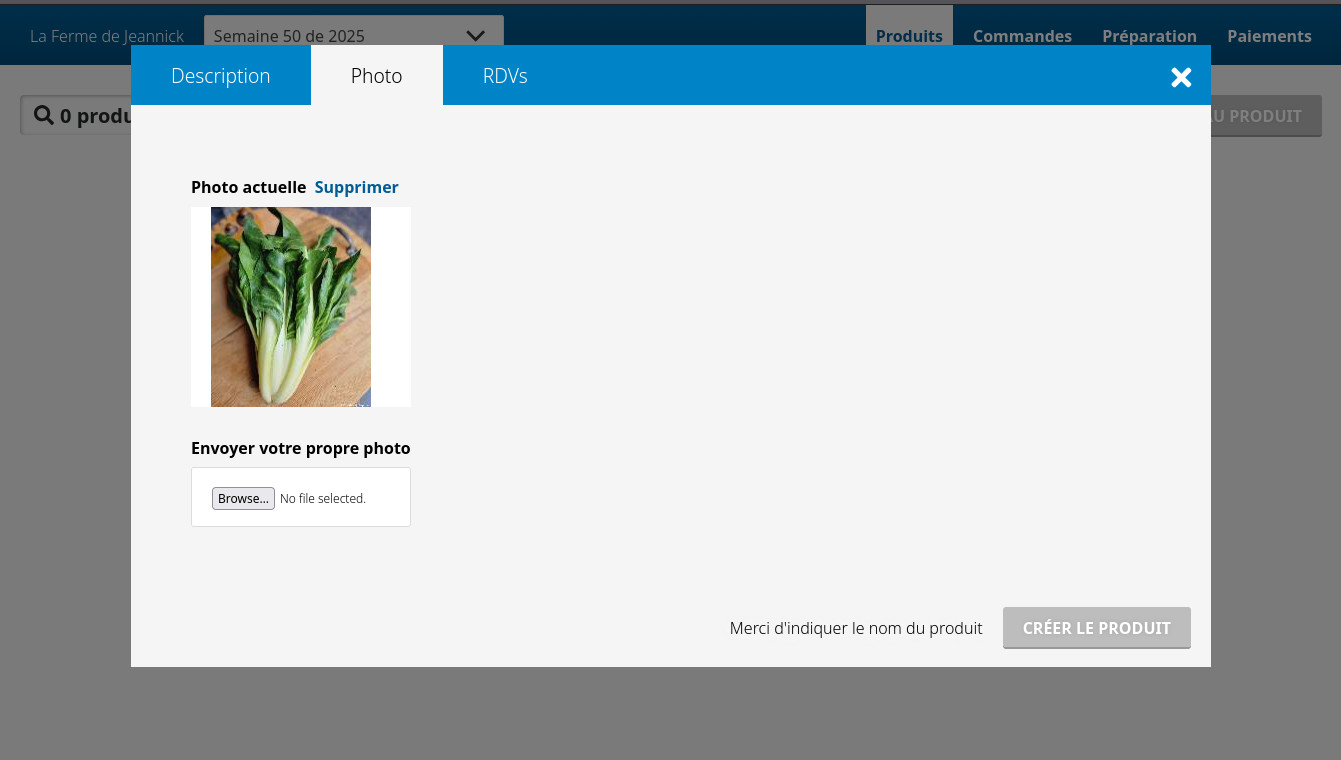 L'envoi de photos dans l'éditeur de produits de l'interface producteur devrait fonctionner.