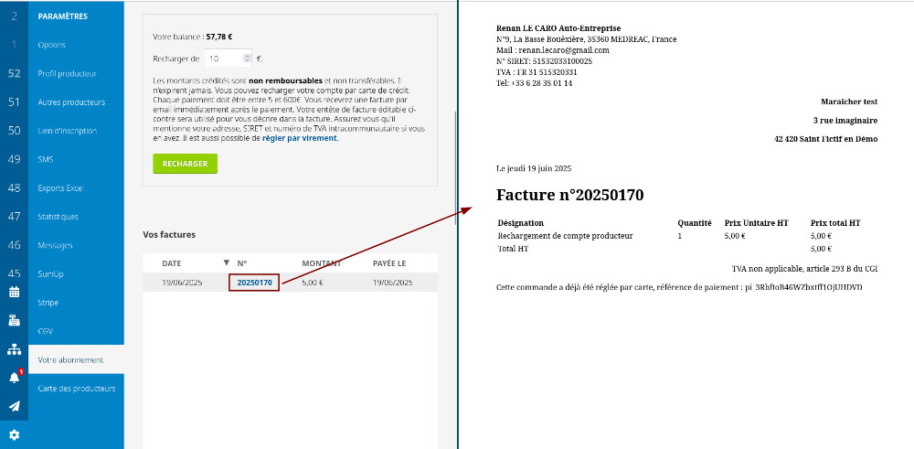 Vous pouvez maintenant directement consulter toutes vos factures ciboulette sur l'interface producteur, dans l'onglet "votre abonnement".