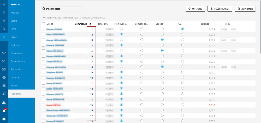 Maintenant, si vous tapez un nombre uniquement dans la rechercher, et qu'une commande a exactement ce numéro, seule cette commande est affichée. C'est le cas dans les onglets "commandes", "commentaires", "livraison", "tickets" et "paiements" de la semaine.