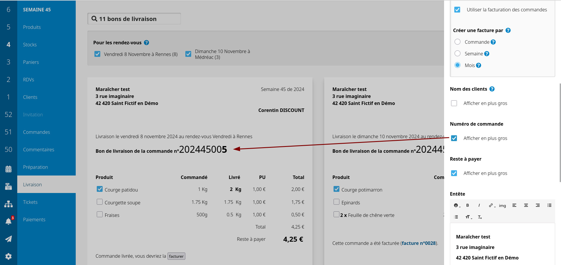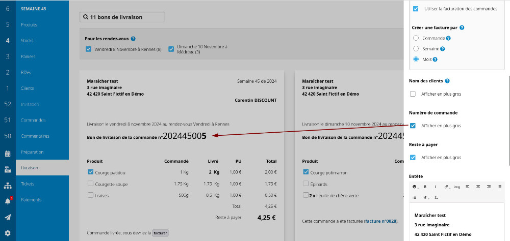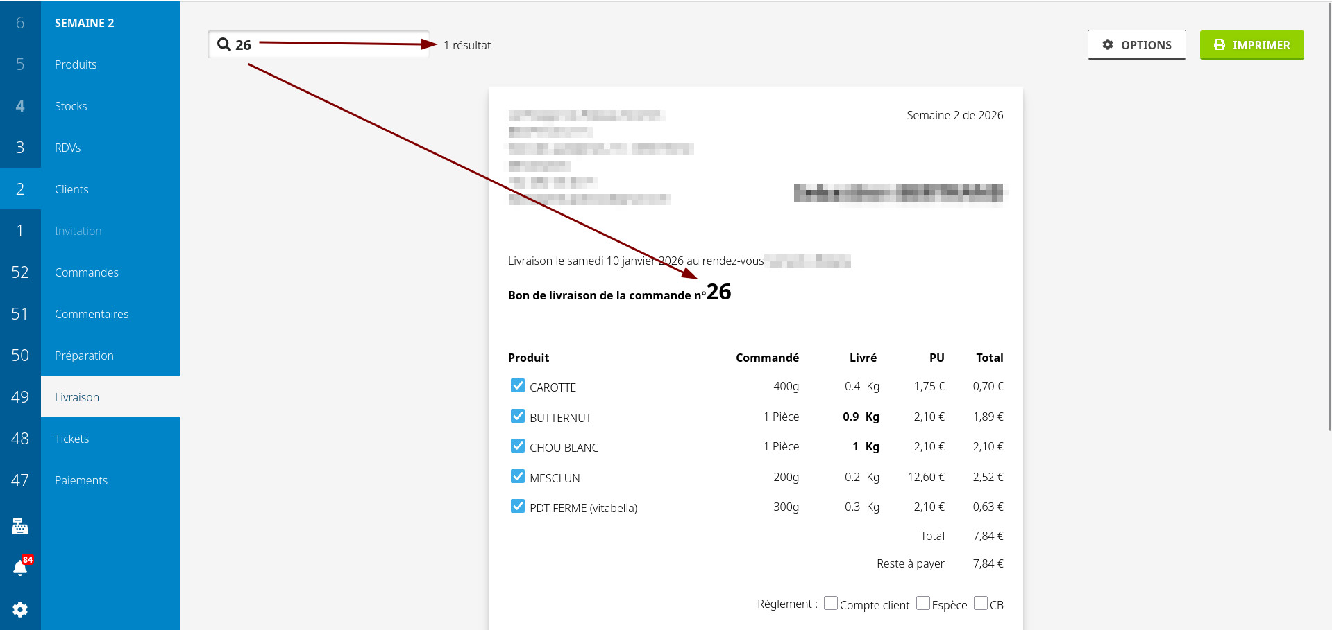 Vous pouvez maintenant trouver une commande par numéro en tapant son numéro dans la recherche. Précédemment, taper "26" aurait aussi fait ressortir les commandes livrées le 26 janvier, ou les commandes d'un client avec un 26 dans le numéro de téléphone, ou bien avec un 26 dans la date du RDV.