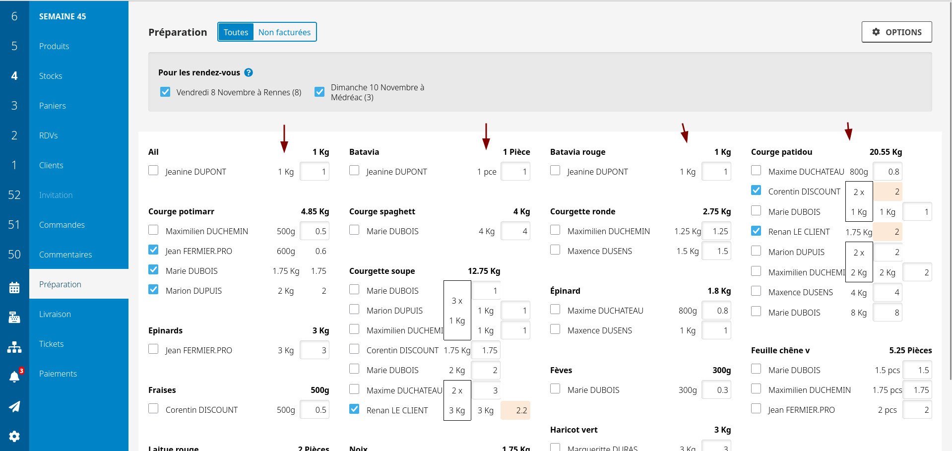 Dans la préparation sur téléphone, sur certaines tablettes, la quantité commandée ne s'affichait pas, c'est réglé.