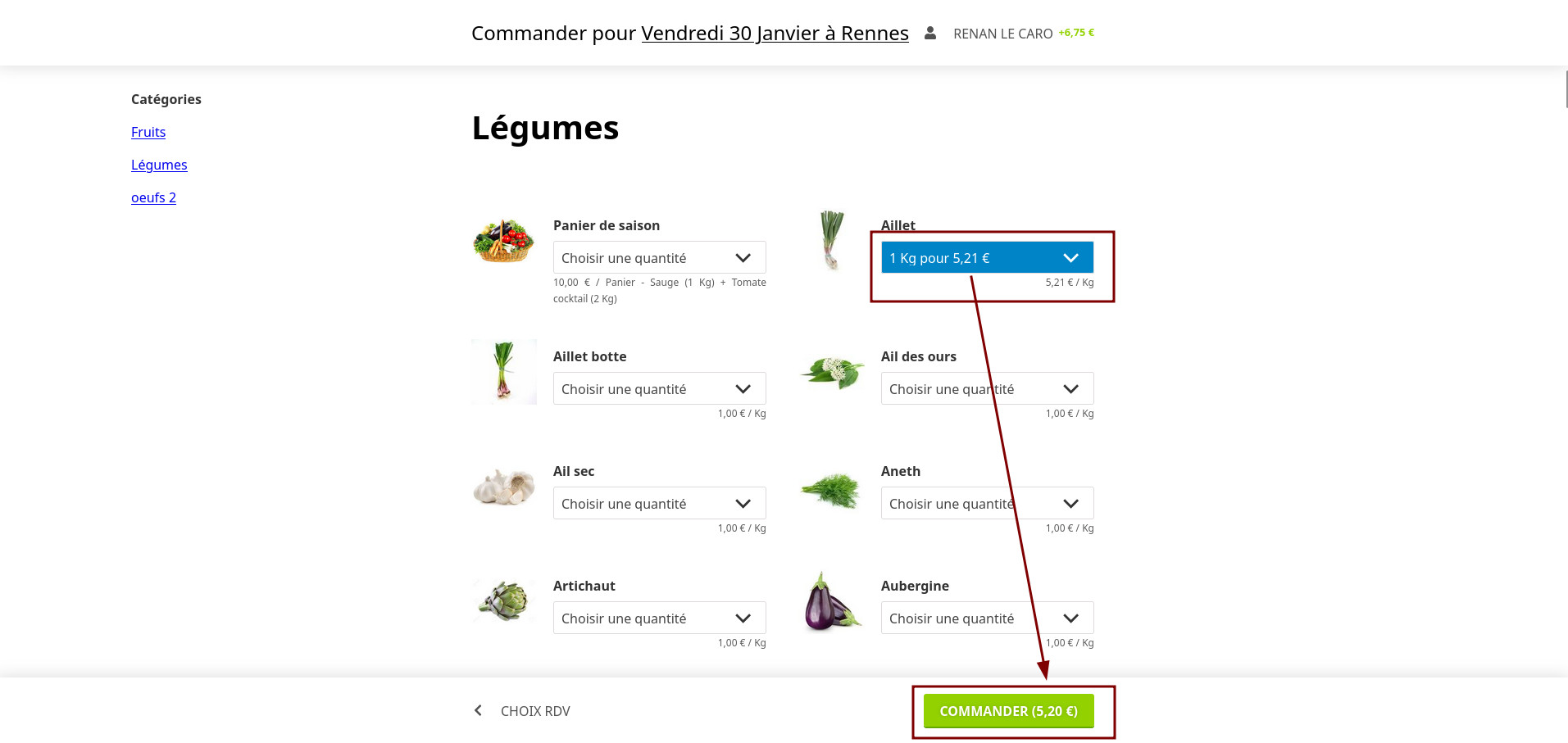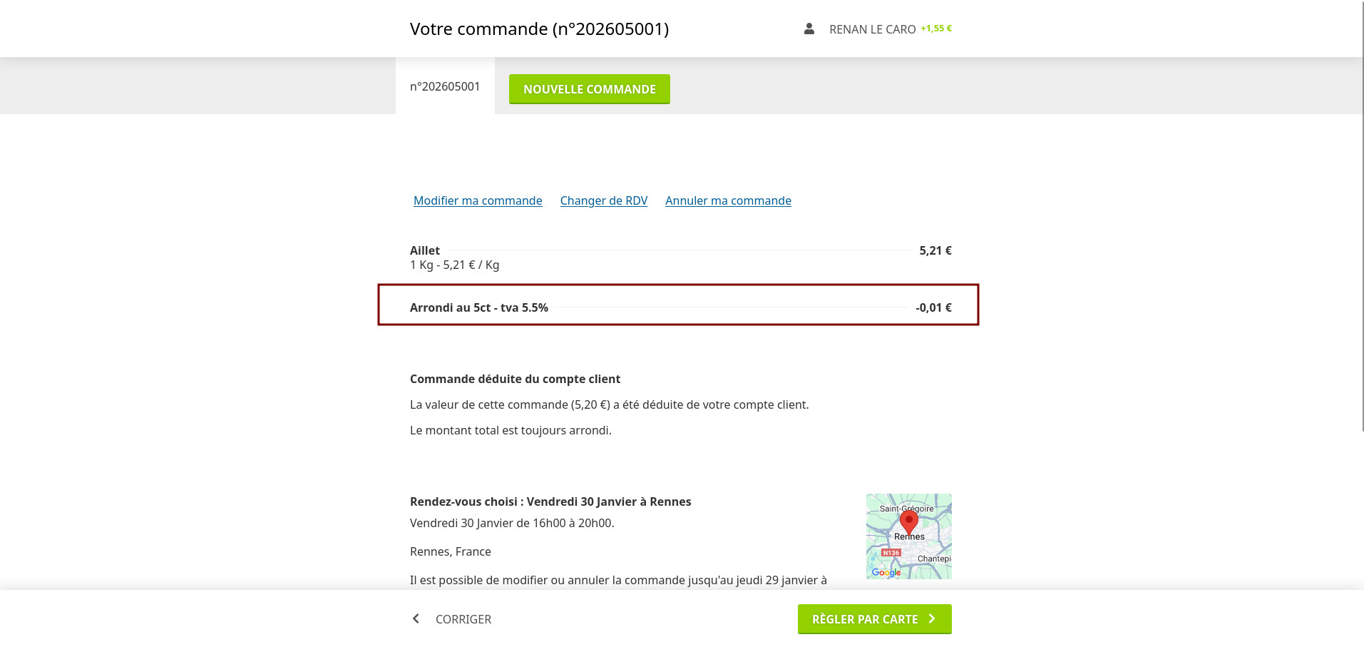 Si vous modifiez la commande, le total est de nouveau arrondi.