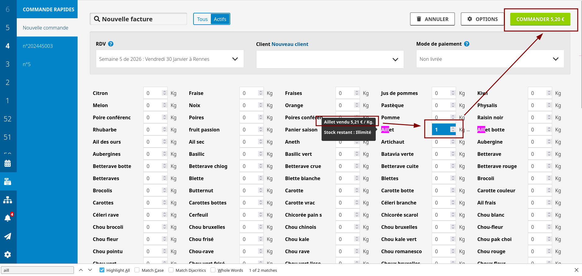 L'outil de commande rapide affiche aussi le montant arrondi.