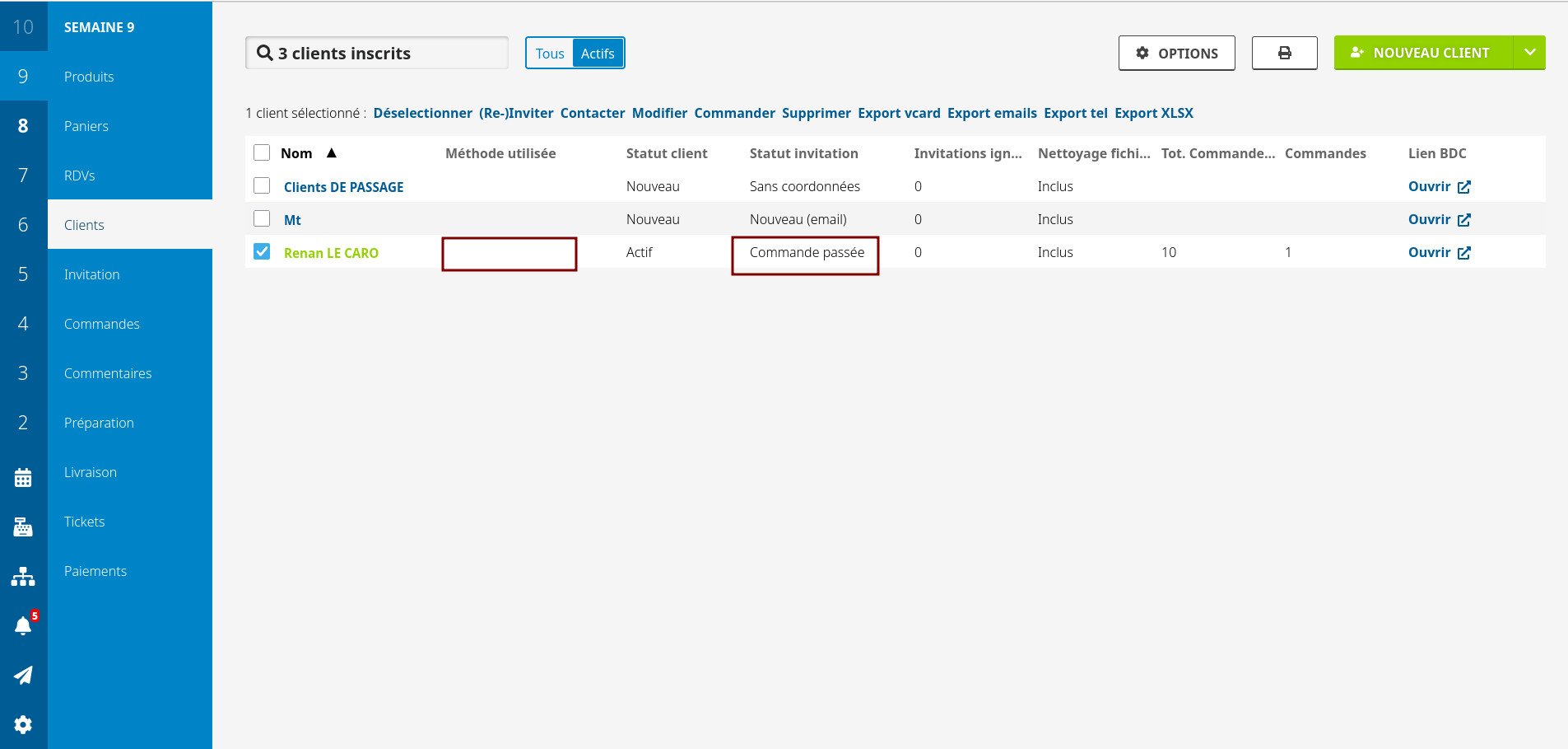 Quand vous passez commande au nom d'un client avant de l'inviter, celui ci passera maintenant directement au statut "commande passée" et ne sera plus automatiquement invité avec les autres.