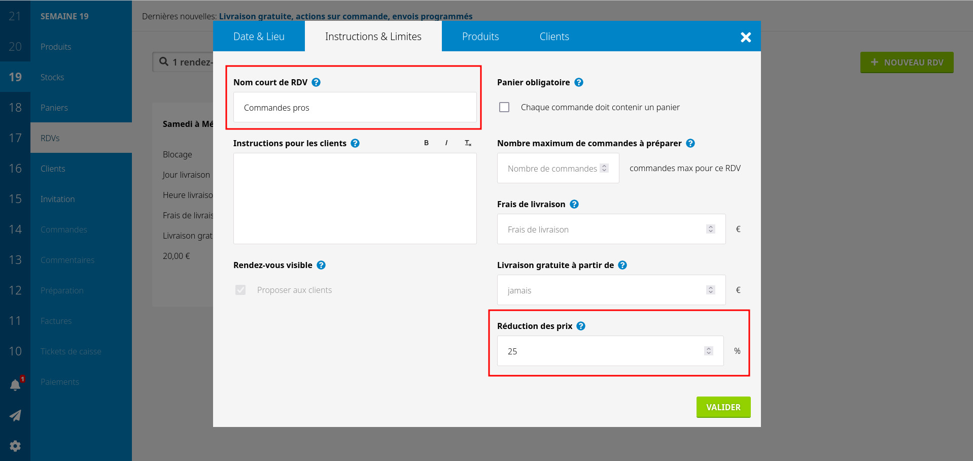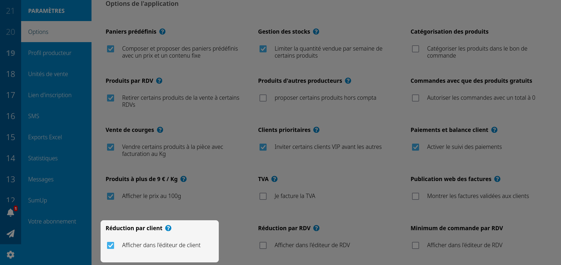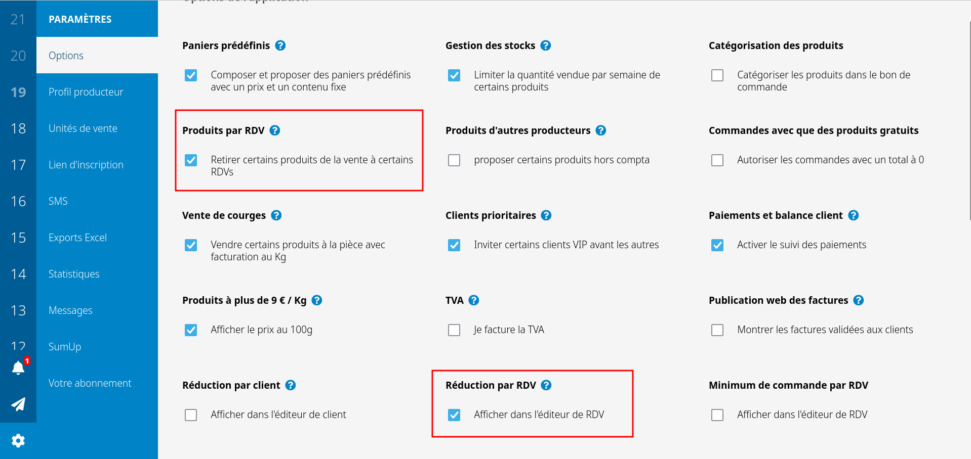 Commencez par activer les options "produits par RDV" et "Réduction par RDV".