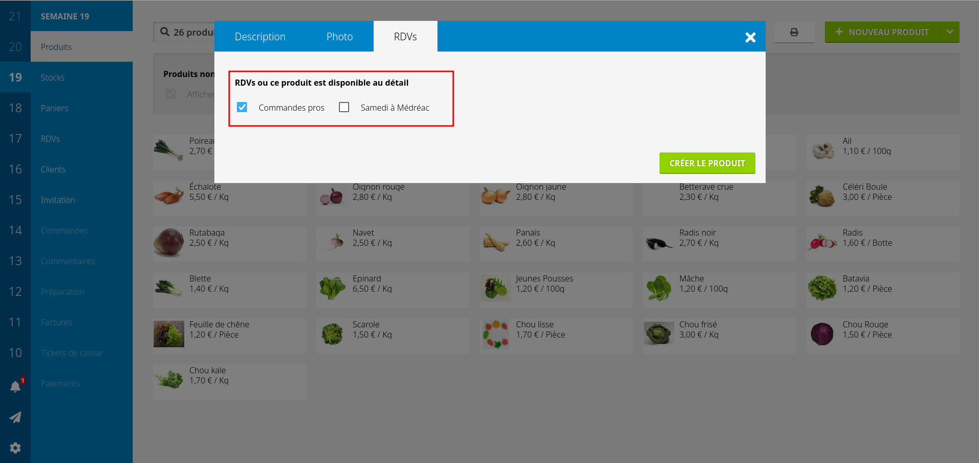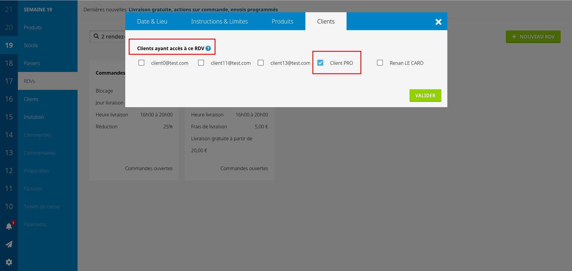 Je vous conseille de mettre "PRO" dans le nom de la copie pour vous y retrouver, et de retirer le produit "grand public" du rdv pro. Il peut aussi être intéressant de créer des "panier" avec un tarif avantageux uniquement pour vos clients pro, ce qui permet de gérer les stocks correctement.