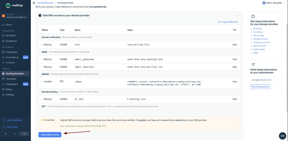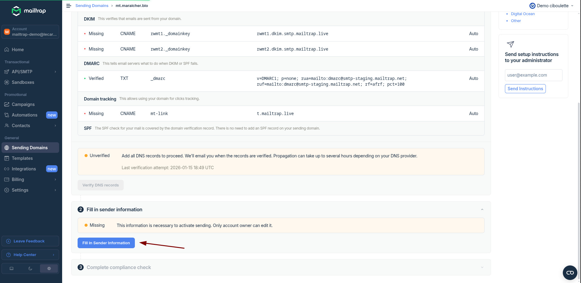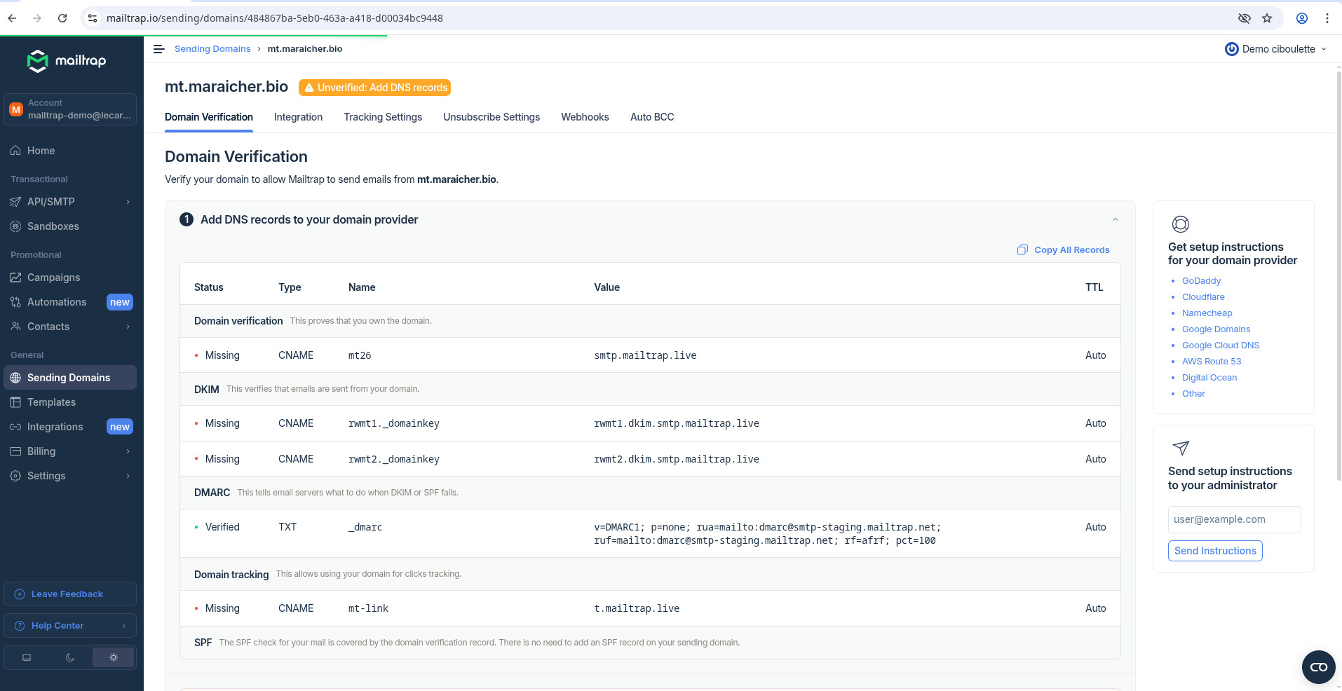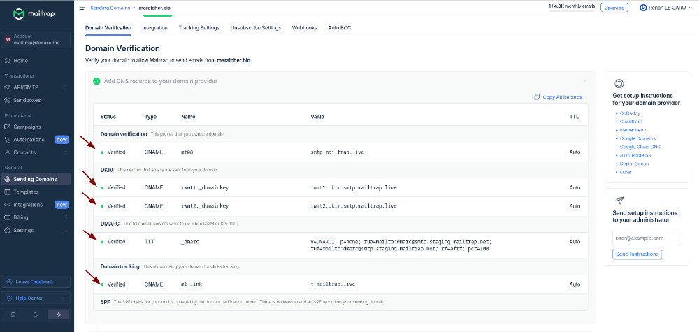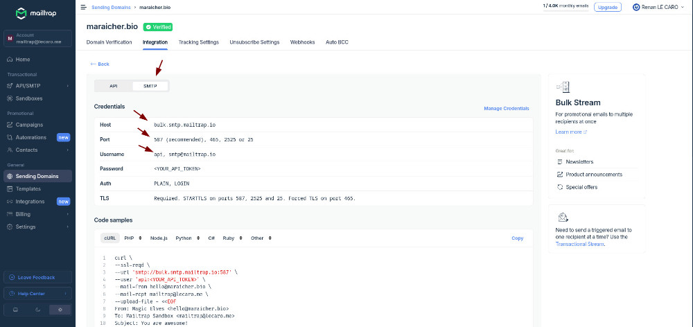 Cela vous coûtera 15$ / mois pour un forfait basic permettant d'envoyer 10 000 emails par mois. Certaines des étapes du tutoriel sont en anglais, et ça risque de devenir un peu technique. Vous devez posséder un nom de domaine, et avoir accès aux réglages DNS de ce domaine.
